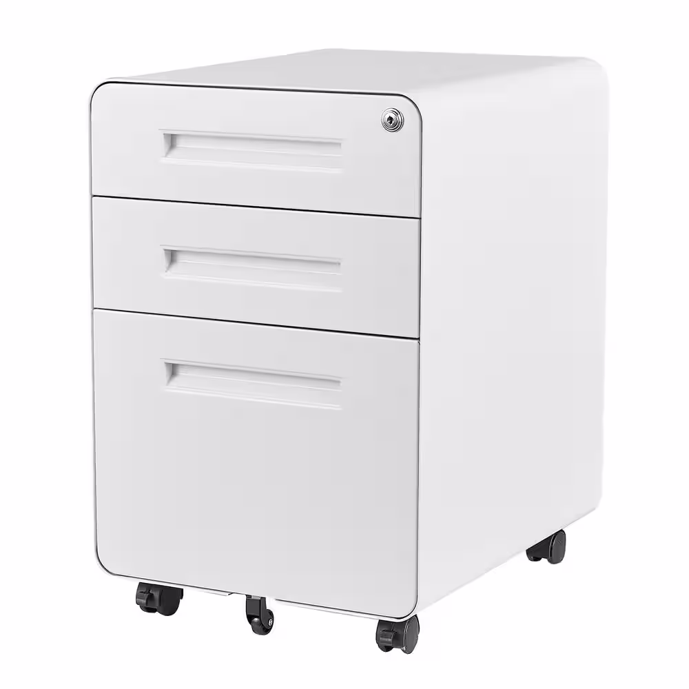 Mlezan White Filing Cabinet 3 Drawer on Wheels 17.7 in. D x 15.7 in. W x 22.8 in. H Deep Drawers for Legal Letter Files