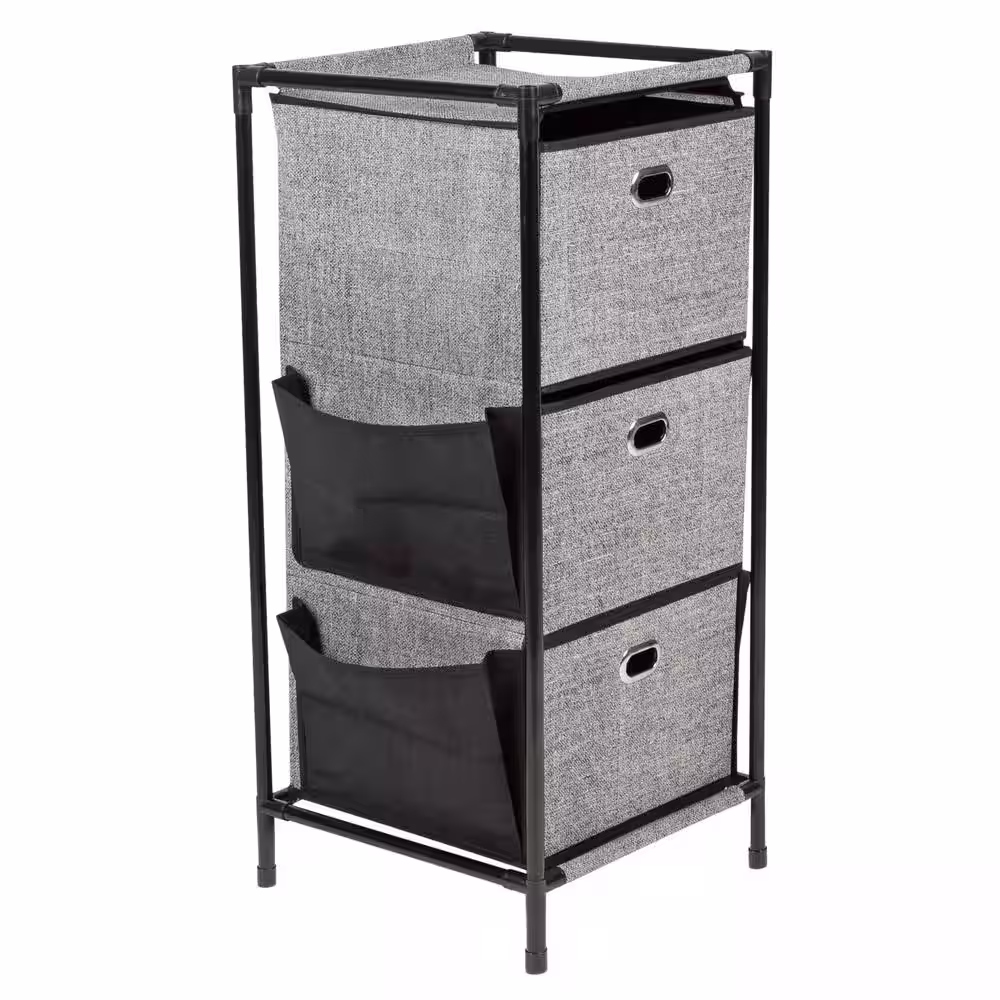 Simplify 3 Tier Storage Drawers with Side Pockets Unit in Black