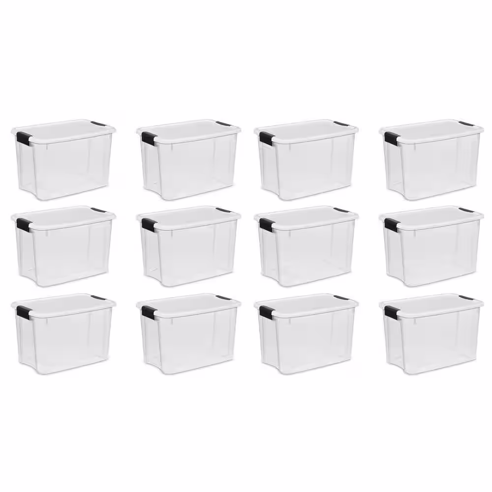 Sterilite 30 Qt. Ultra-Latch Storage Box with White Lid and Clear Base (12-Pack)