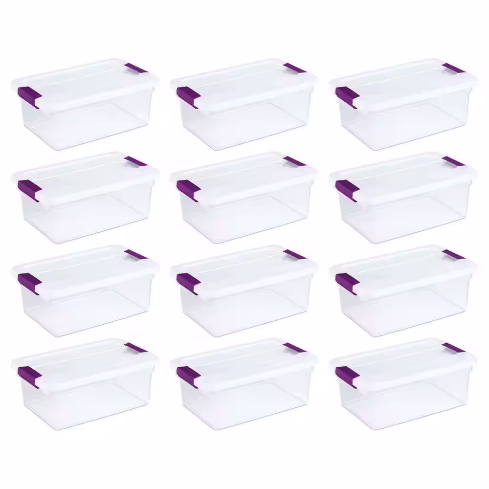 Sterilite 15-Quart Plastic Stackable Storage Container with Lid, Clear (12 Pack)