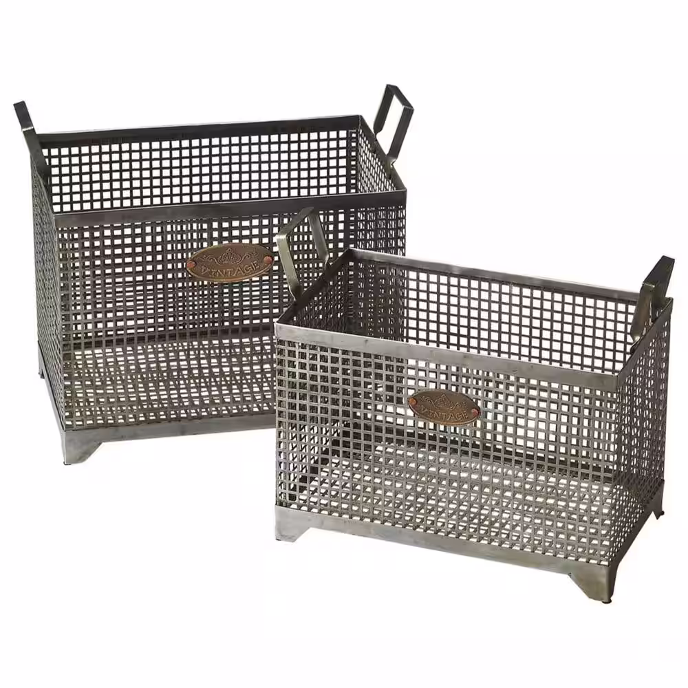 HomeRoots 11 in. H x 16.5 in. W x 14 in. D Gray Steel Cube Storage Bin 2 -Pack
