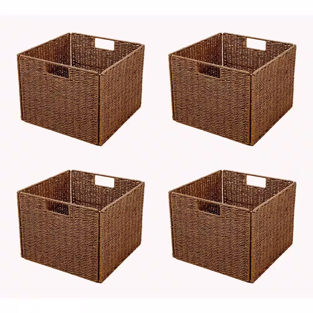 Trademark Innovations 12 in. H x 12 in. W x 12 in. D Brown Wicker Cube Storage Bin 4-Pack