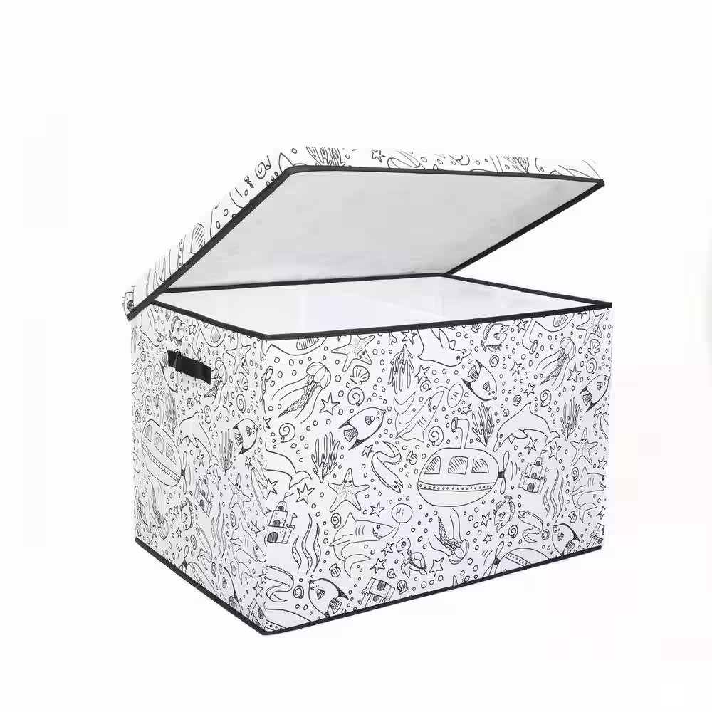 BAUM Kid's Coloring Cube Storage Bin with Removable Divider and 4-Pack of Washable Marker