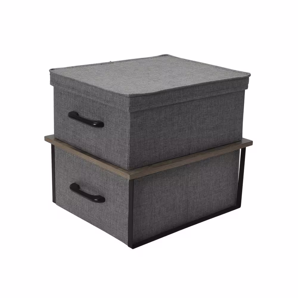 HOUSEHOLD ESSENTIALS 13 in. H x 14 in. W x 16 in. D Ashwood Stacking Cube Storage Bins with Ashwood Laminate Top, 2pc set