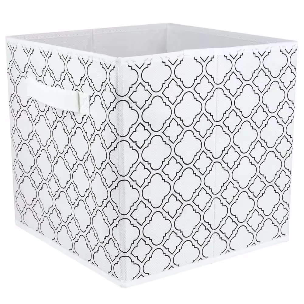 Home Basics 10.5 in. H x 10.5 in. W x 10.5 in. D White Fabric Cube Storage Bin