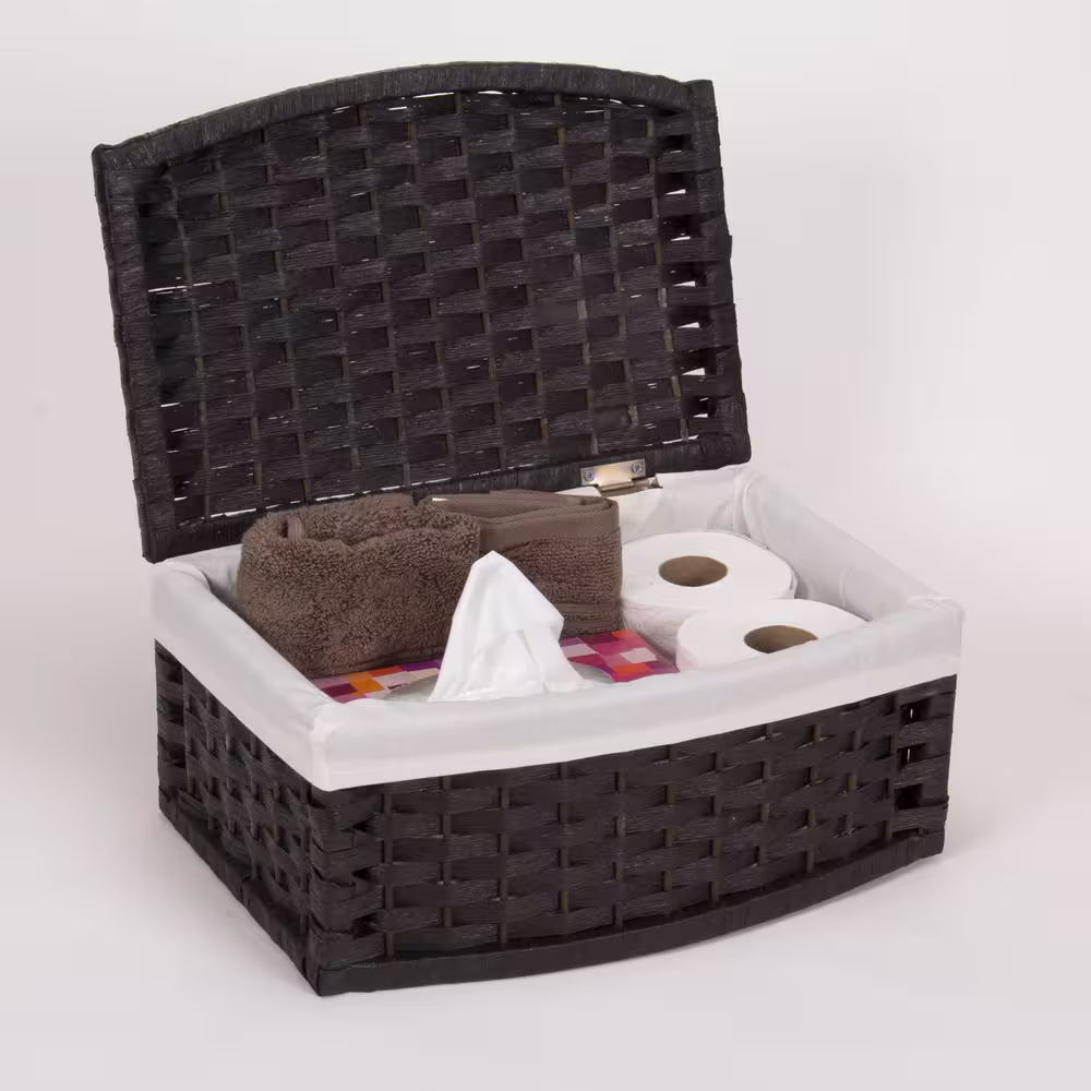 HOUSEHOLD ESSENTIALS Black Stained Paper Rope Curved Basket with Fitted White Liner