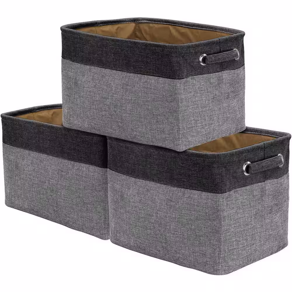 Sorbus 15 in. H x 10 in. W x 9 in. D Black Grey Fabric Cube Storage Bin with Carry Handles 3-Pack