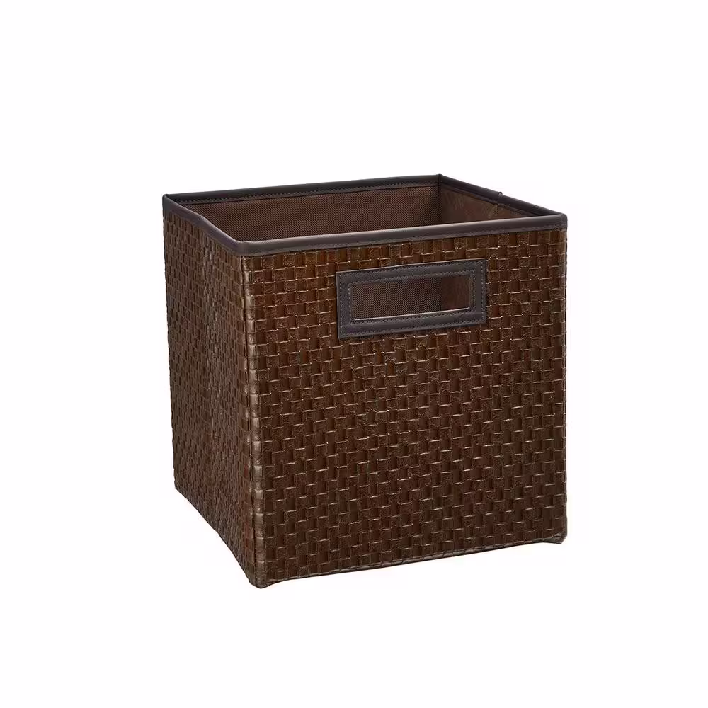 Home Basics 10 in. H x 13 in. W x 15 in. D Brown Fabric Cube Storage Bin