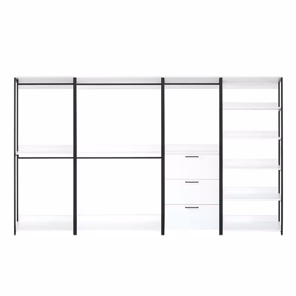None Fiona 111 in. W White Freestanding 3 Tower System 7 -Shelf Walk in Wood Closet System with Metal Frame