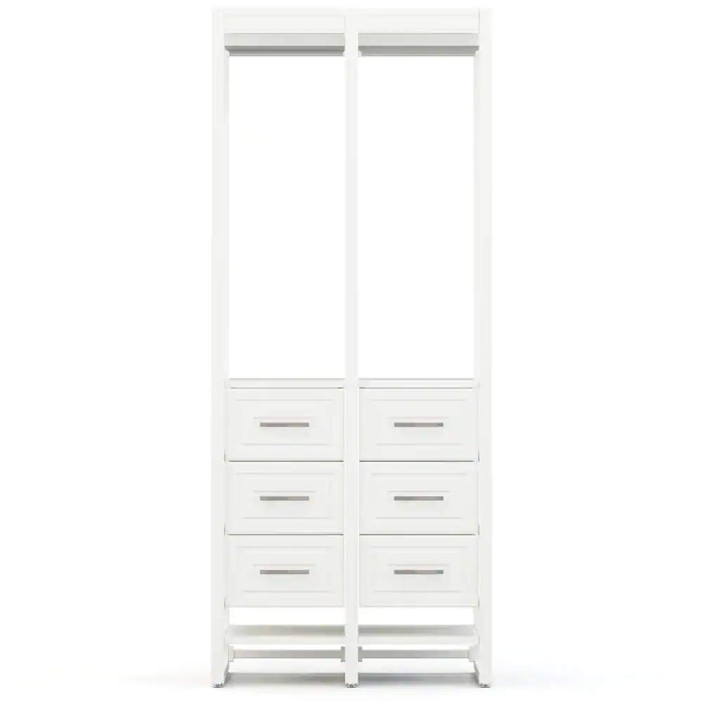 CLOSETS By LIBERTY 34.5" in. W White Wood Adjustable Closet System with 6-Shelves, 2-Rods, and 6-Drawers