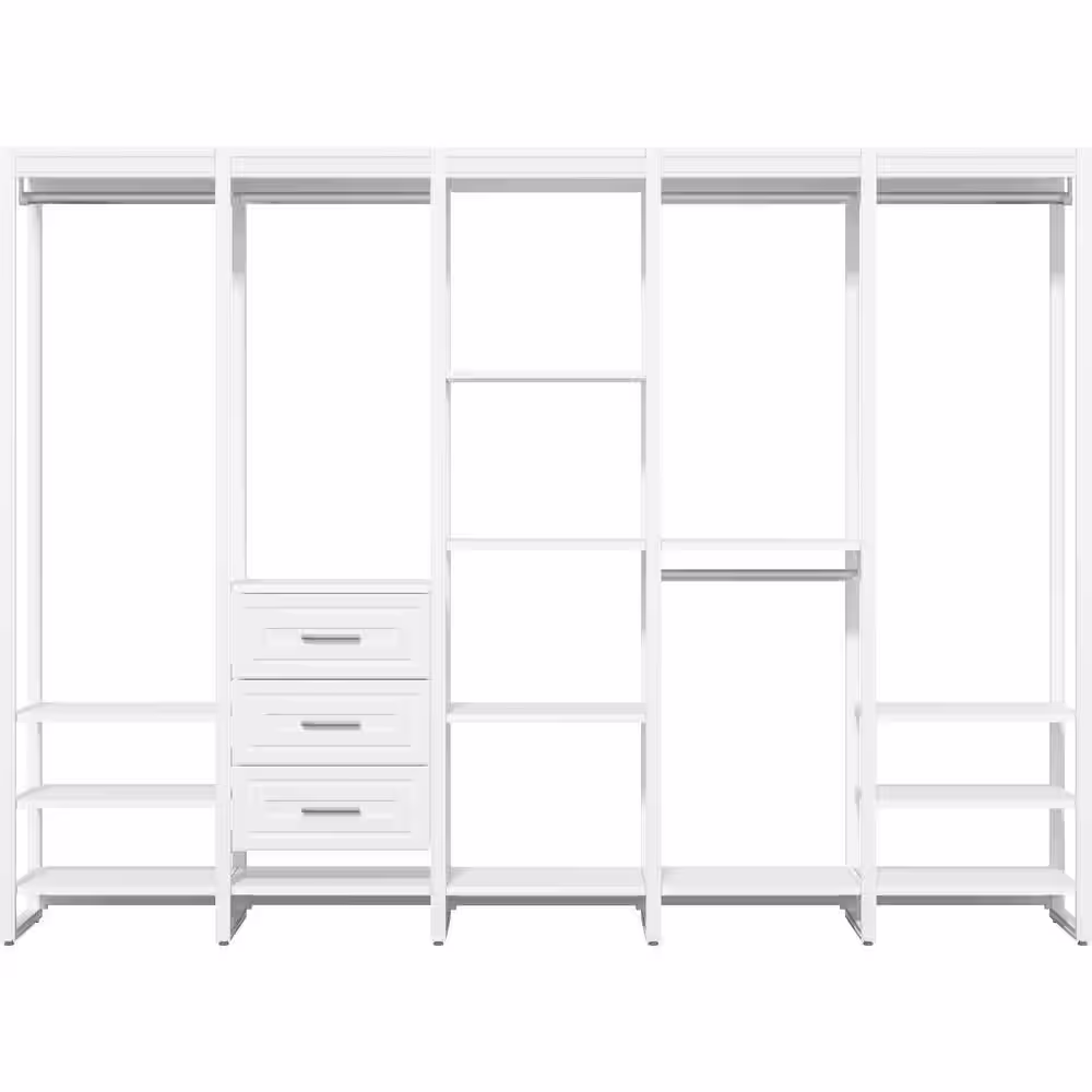 CLOSETS By LIBERTY 113 in. W White Adjustable Tower Wood Closet System with 3 Drawers and 19 Shelves