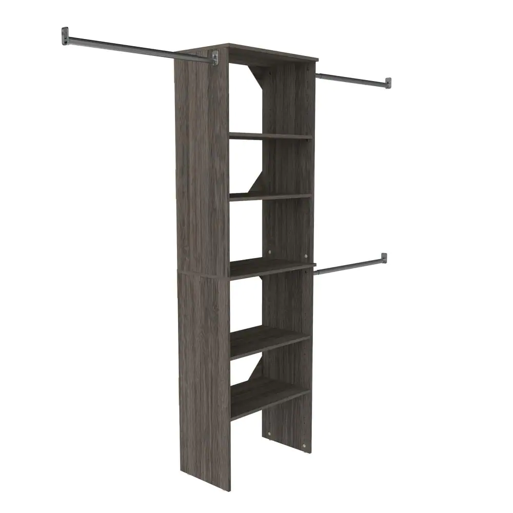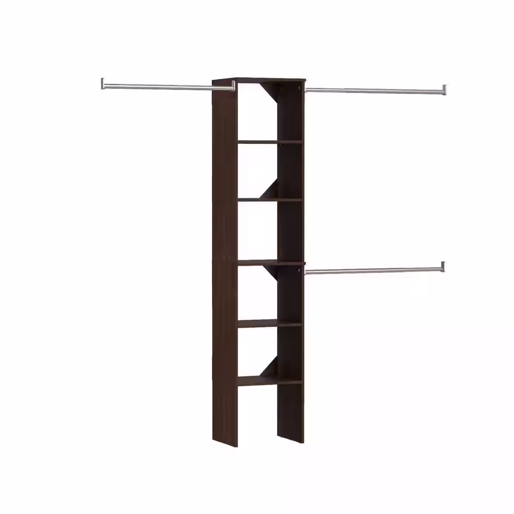 ClosetMaid Style + 14 in. D x 17 in. W x 82.25 in. H Coastal Teak Wood Floor Mount 6-Shelf Closet Kit With Hang Rods