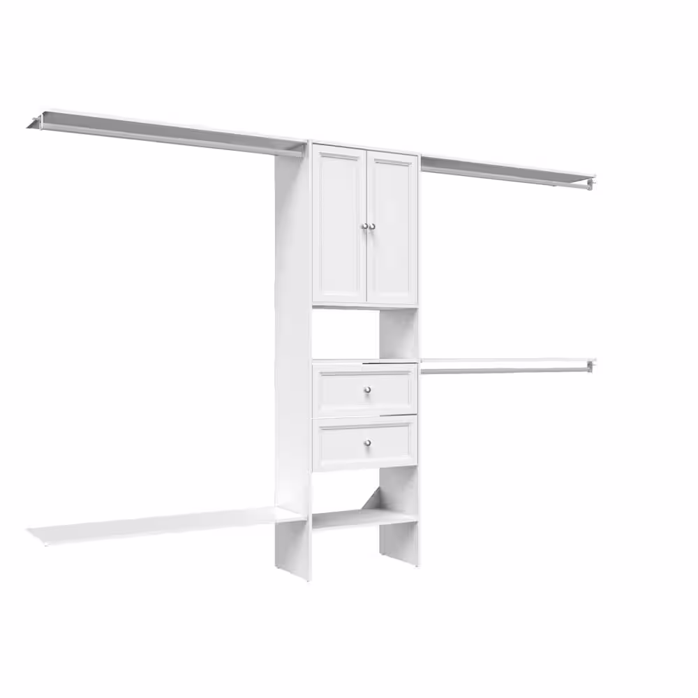 ClosetMaid Selectives 85 in. W x 121 in. W White Premium Wood Closet System Kit with Drawers and Doors