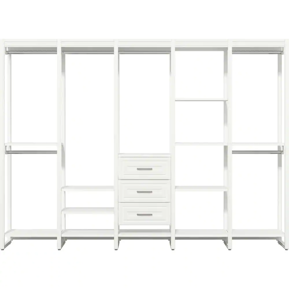 CLOSETS By LIBERTY 113 in. W White Adjustable Tower Wood Closet System with 3 Drawers and 18 Shelves