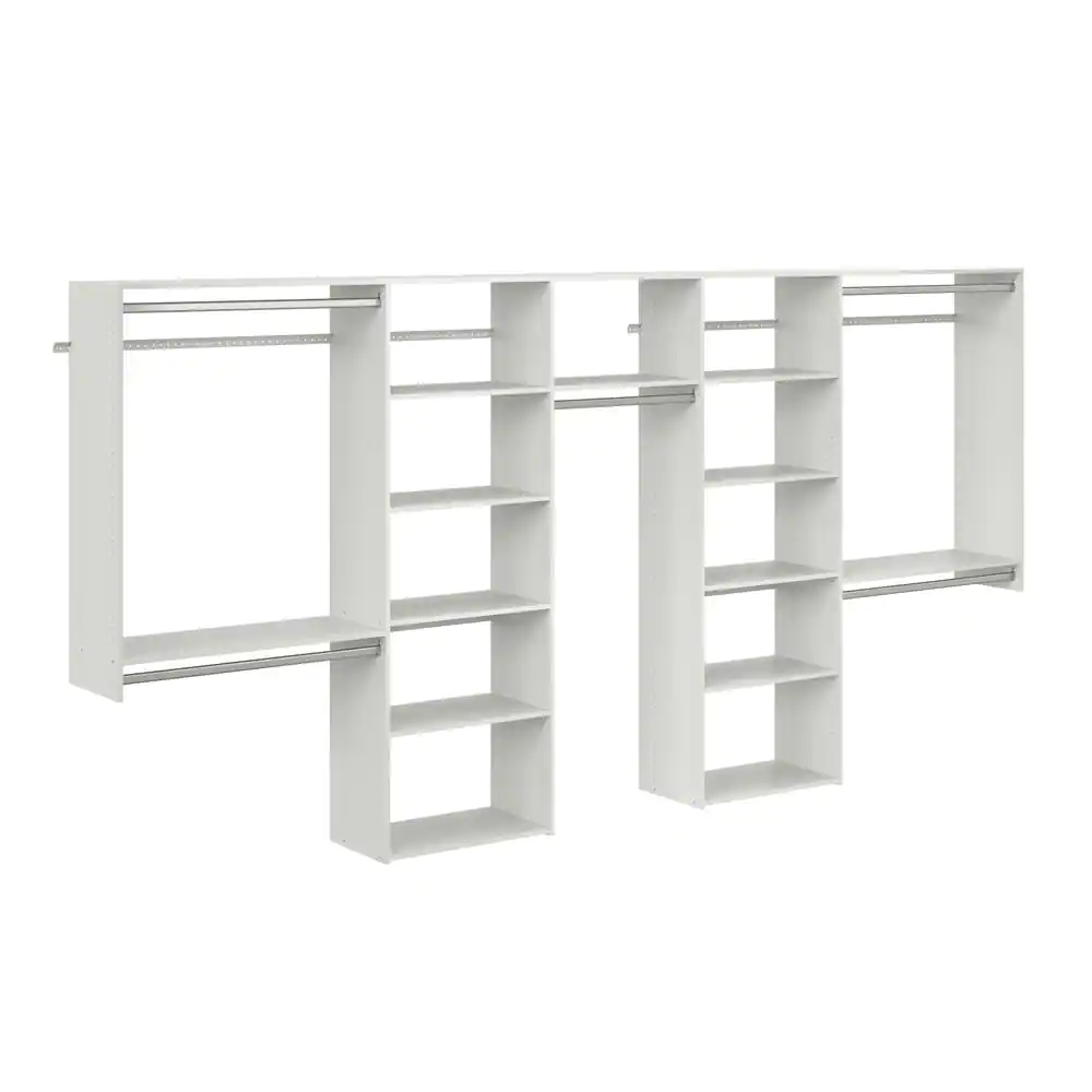 Closet Evolution 120 in. W - 144 in. W White Wood Basic Closet System