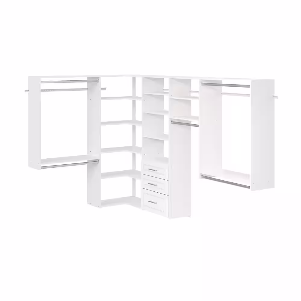 Closet Evolution Modern Raised Ultimate 84 in. W - 115 in. W White Corner Wood Closet System