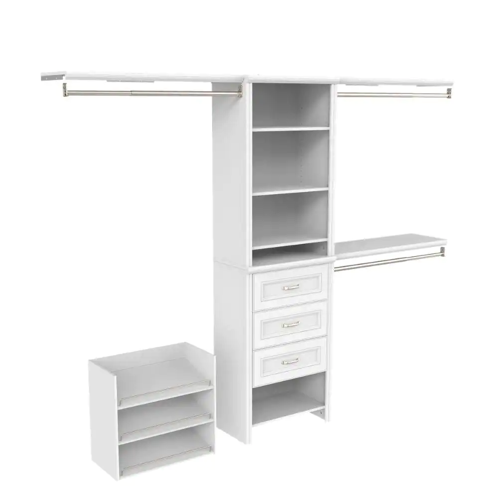 Closet Evolution Modern Raised Dual Tower 96 in. W - 120 in. W White Wood Closet System