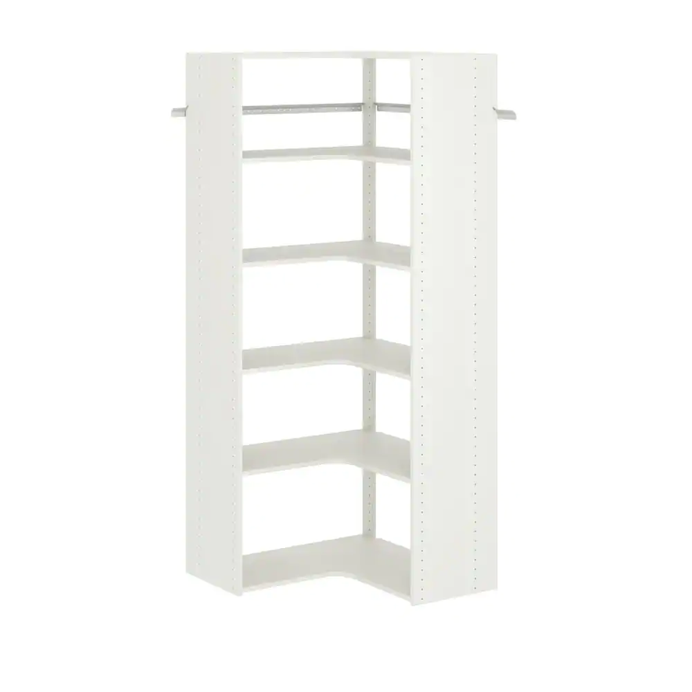 Closet Evolution 30 in. W White Corner Unit Wall Mount 6-Shelf Wood Closet System