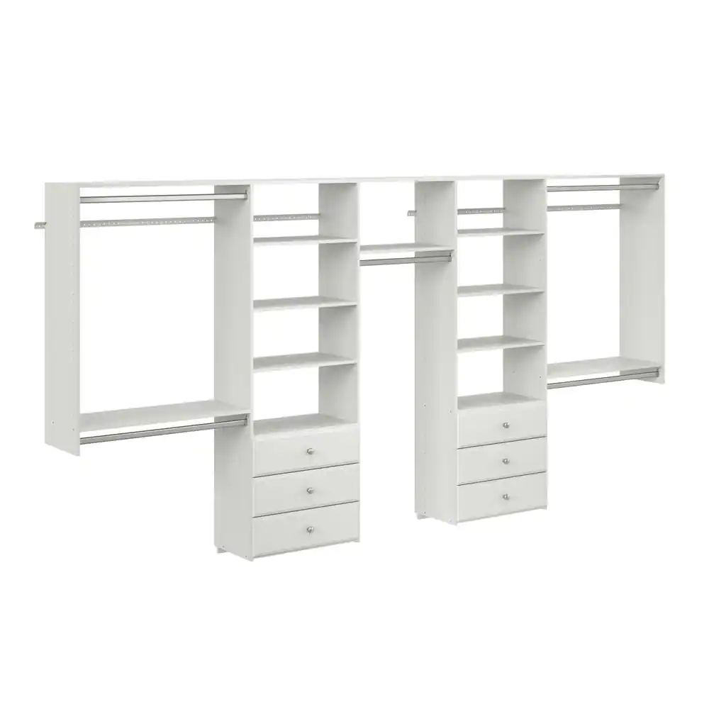 Closet Evolution 120 in. W - 144 in. W White Wood Deluxe Closet System