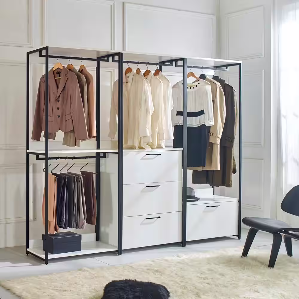 None Fiona 96 in. W White Freestanding Walk in Wood Closet System with Metal Frame