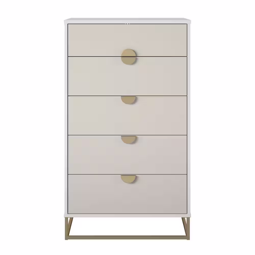 Novogratz Kelly Dresser 5-Wood Drawer, White/Taupe (47 in. H x 27 in. W x 20 in. D)