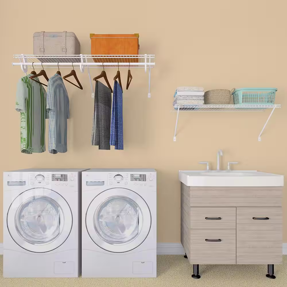 ClosetMaid Superslide 12 in. D x 48 in. W x 36 in. H White Wire Fixed Mount Laundry Shelf Kit