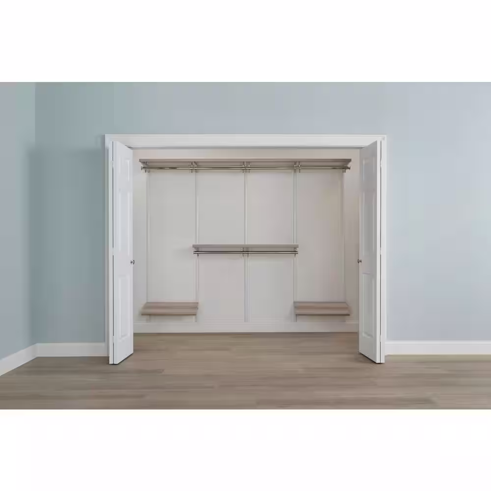 Everbilt Genevieve 8 ft. Gray Adjustable Closet Organizer Double and Long Hanging Rods with Shoe Rack