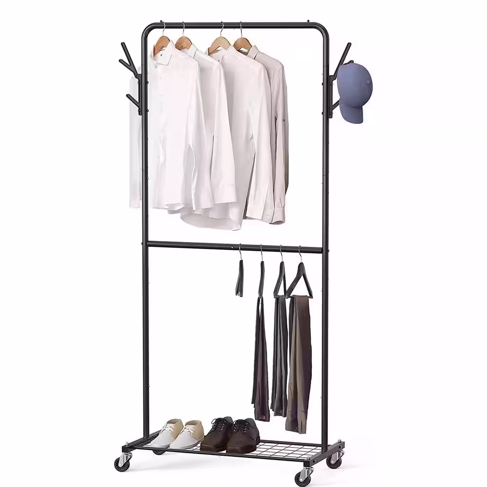 None Black Metal Garment Clothes Rack Double Rods 39 in. W x 63 in. H