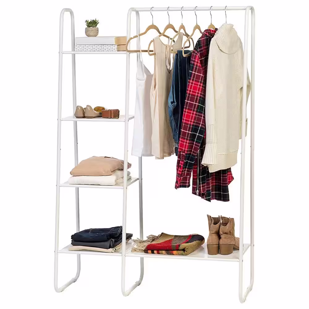 None White Metal Garment Clothes Rack 40 in. W x 59 in. H
