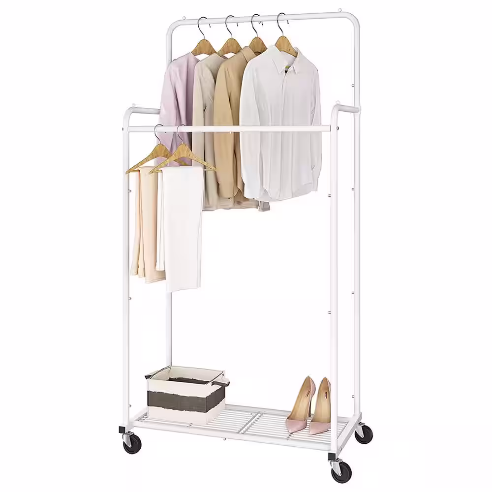 None White Metal Garment Clothes Rack Double Rods 28.5 in. W x 59.6 in. H