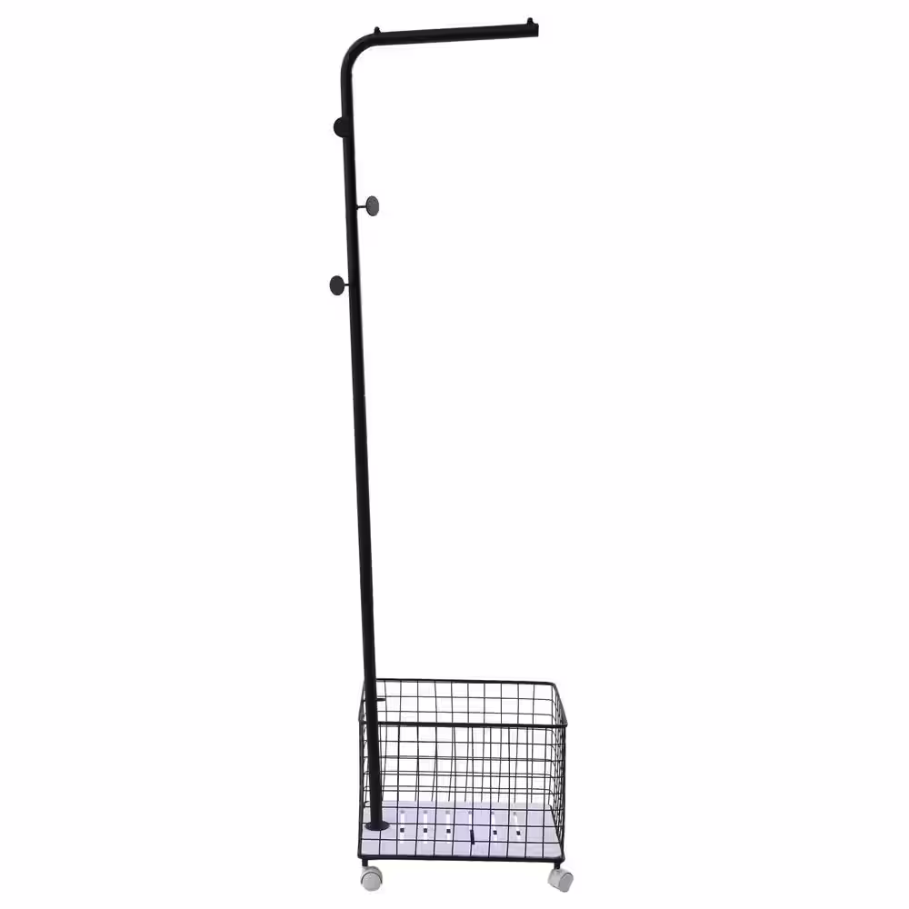 None Black Metal Clothes Rack with Storage Basket 17.7 in. W x 68.9 in. H
