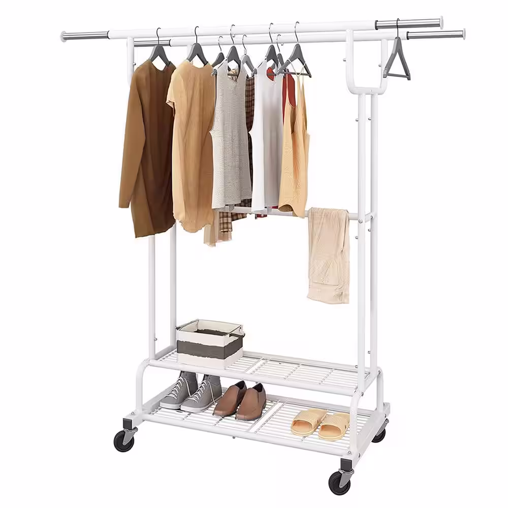 None White Metal Garment Clothes Rack With Double Rod 38 in. W x 62 in. H