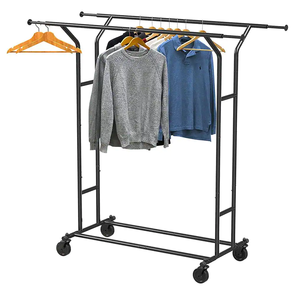 None Black Metal Garment Clothes Rack Double Rods 42.75 in. W x 61.3 in. H
