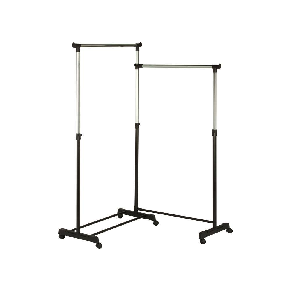 None Black Metal Garment Clothes Rack Double Rods 44 in. W x 65 in. H