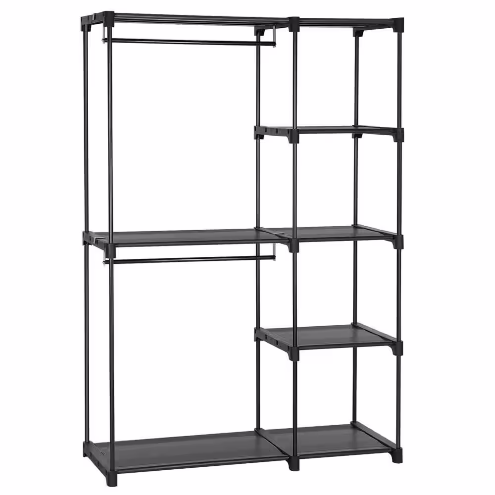 maocao hoom Black Metal Clothes Rack with Shelves 43 in. W x 60 in. H