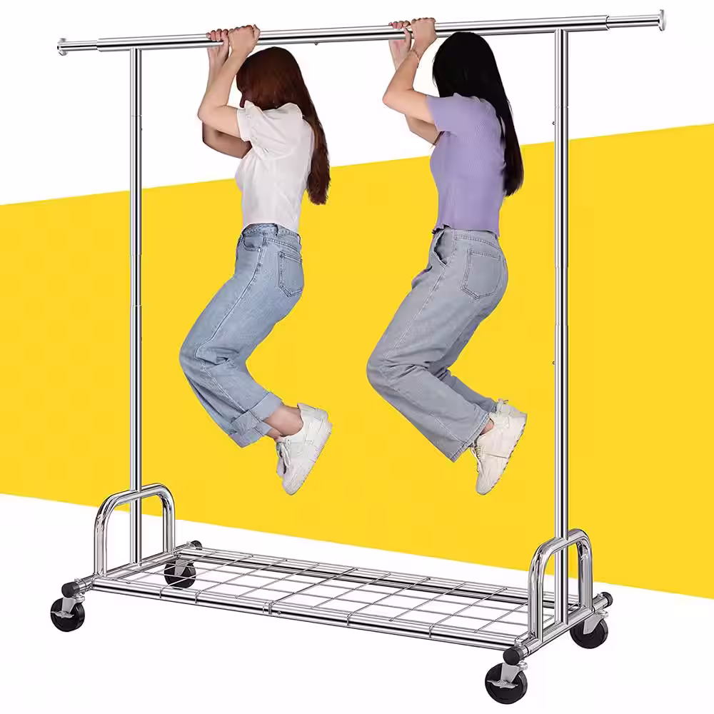 None Chrome Metal Adjustable Garment Clothes Rack 51 in. W x 70 in. H
