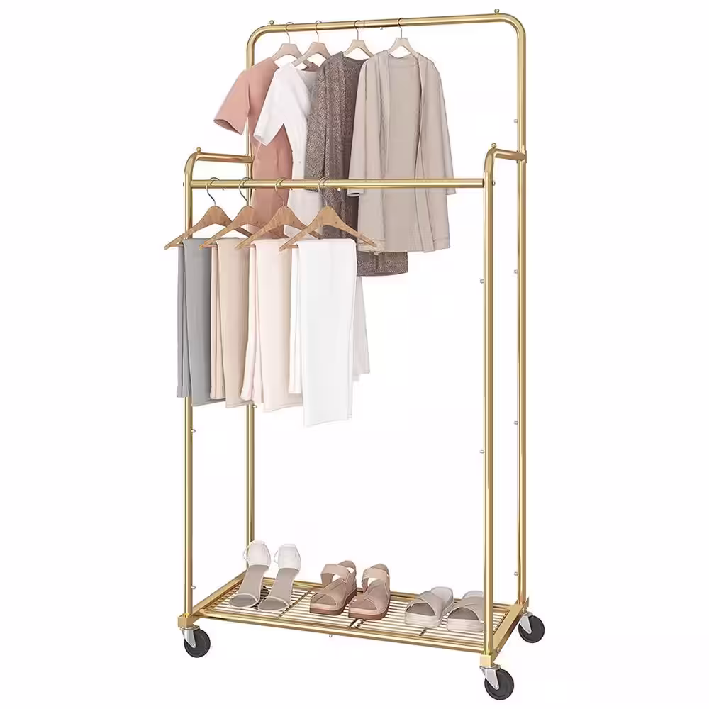 None Gold Metal Garment Clothes Rack With Double Rod 29 in. W x 60 in. H