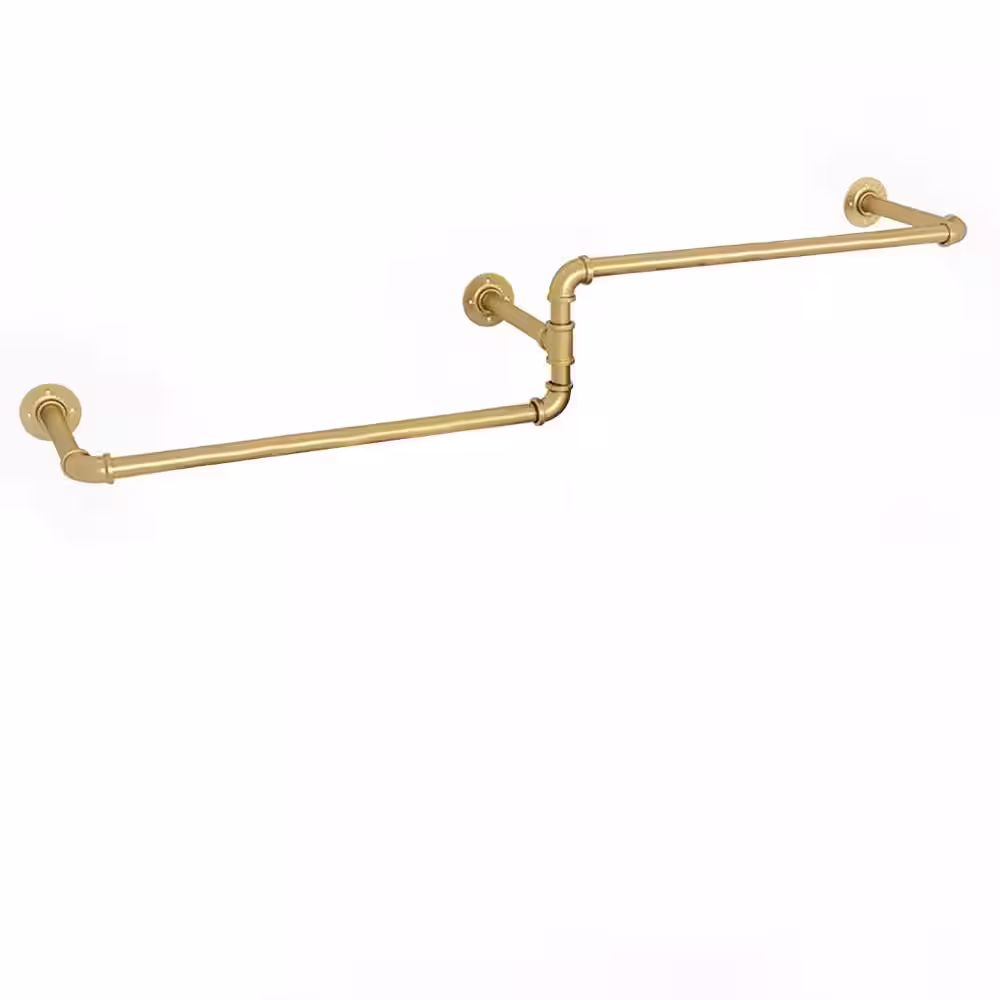 None Gold Iron Clothes Rack Hanging Rod Wall Mounted Pipe Garment Rack 71 in. W x 7.5 in. H