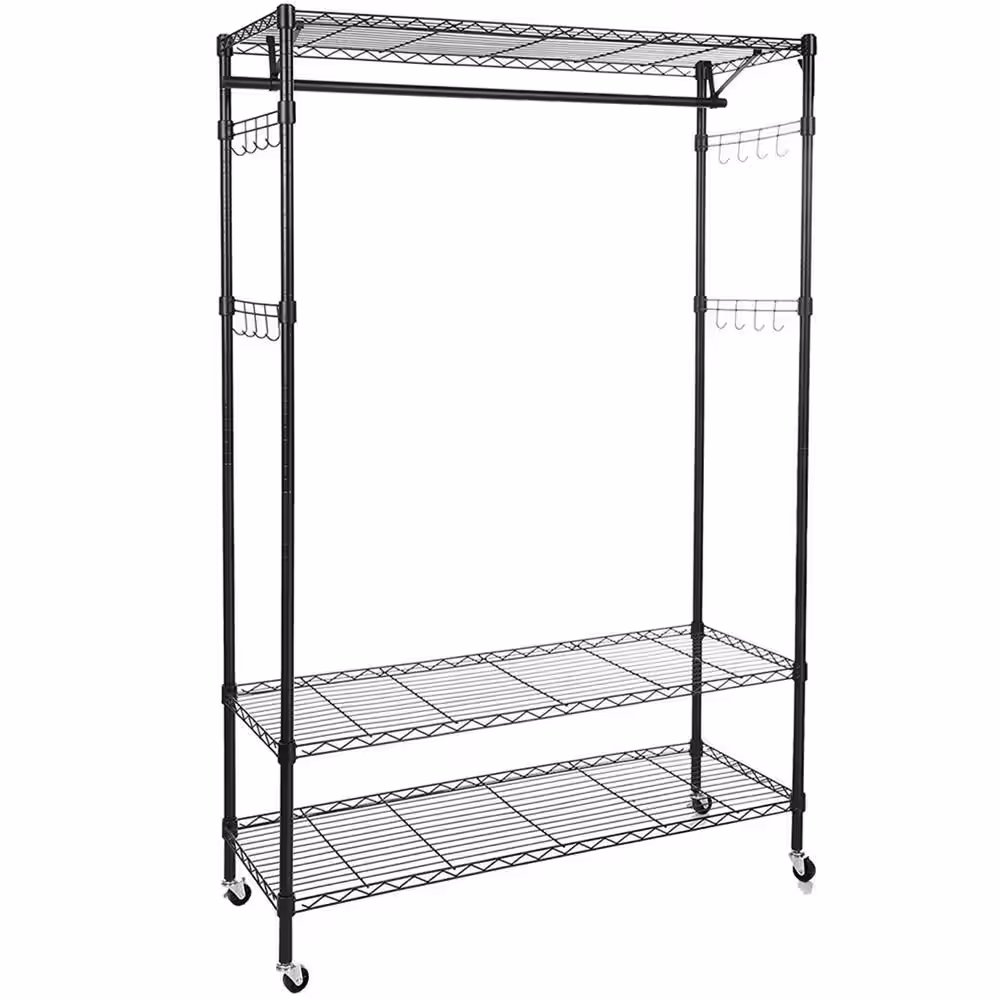 None Black Steel Clothes Rack 17.72 in. W x 70.87 in. H