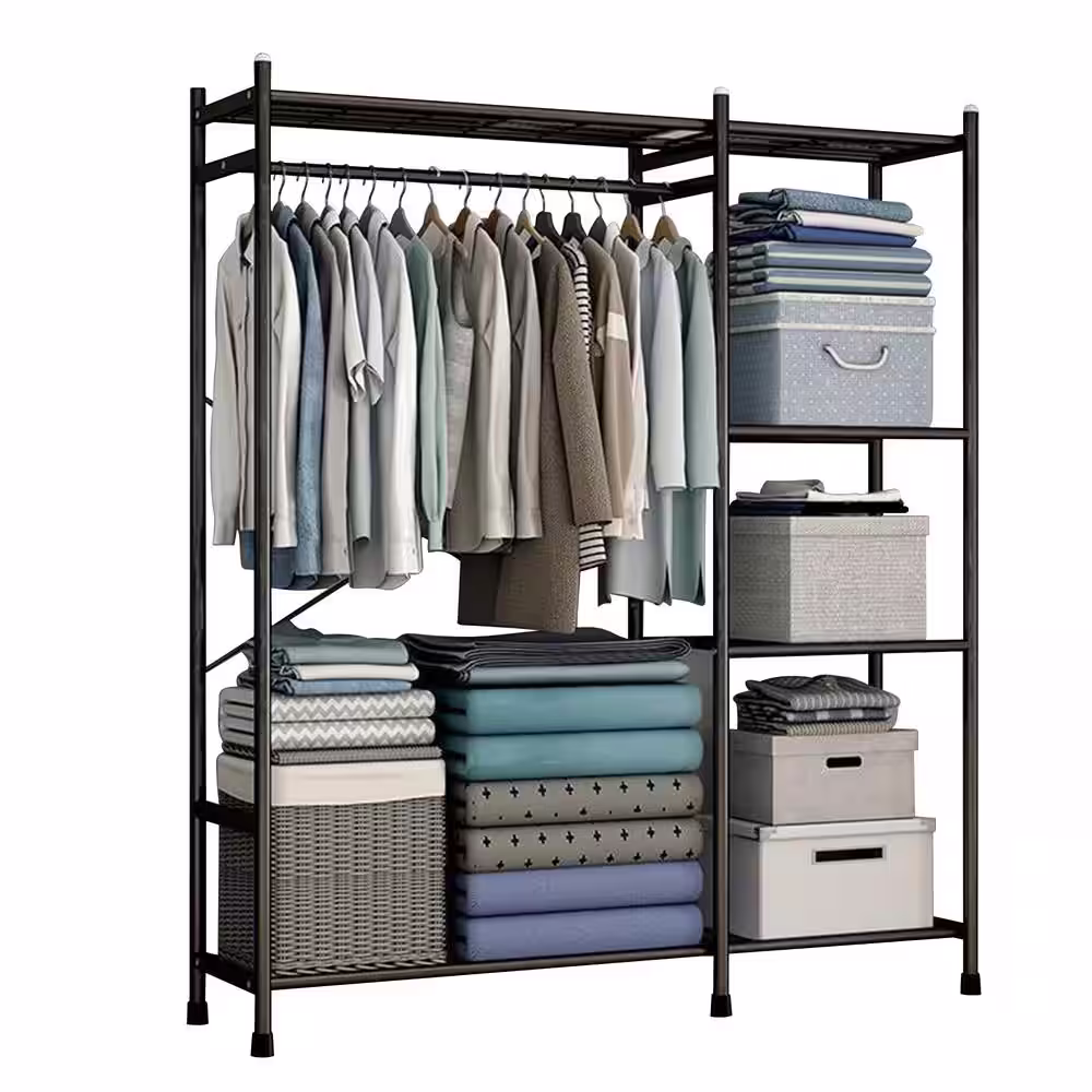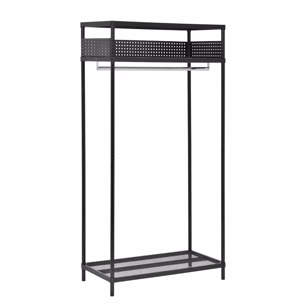 None Black Metal Garment Clothes Rack with Shelves 43 in. W x 81 in. H