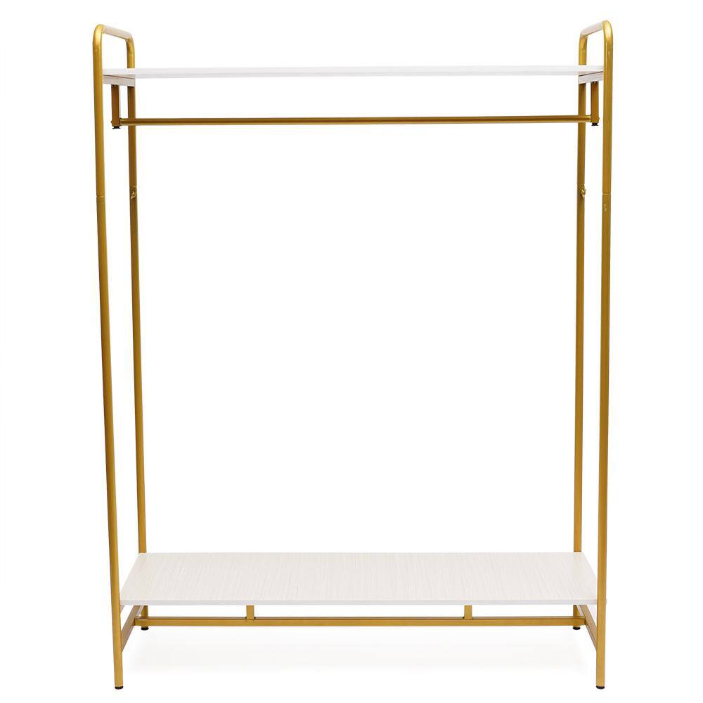 None Gold Iron Freestanding Large Clothes Rack with Shelfves 15.74 in. W x 70.86 in. H