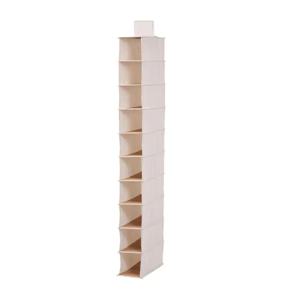 Honey-Can-Do 51.18 in. H 10-Pair Natural Bamboo and Canvas Hanging Shoe Organizer