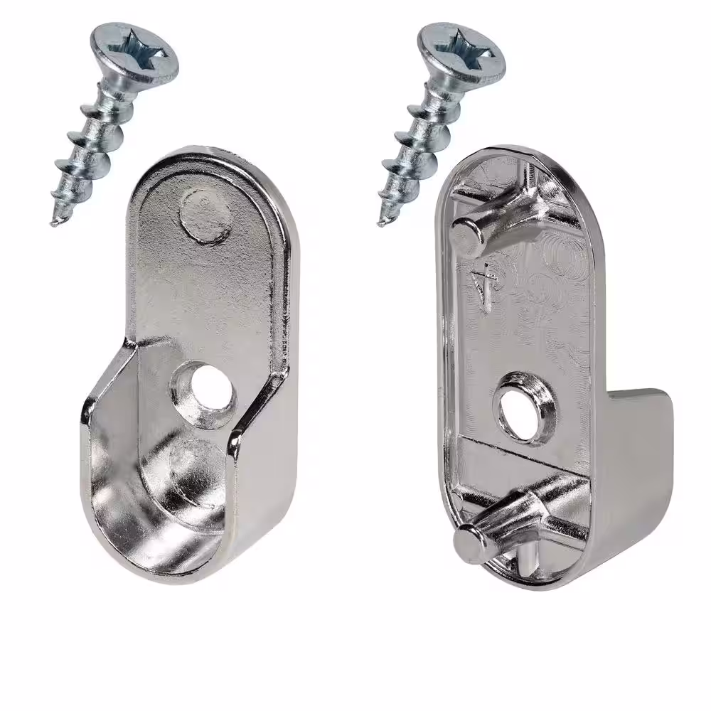 Rok 30 mm x 15 mm Chrome Metal Oval Closet Pole Socket Rod End Support with 5 mm Pins (10-Pack)