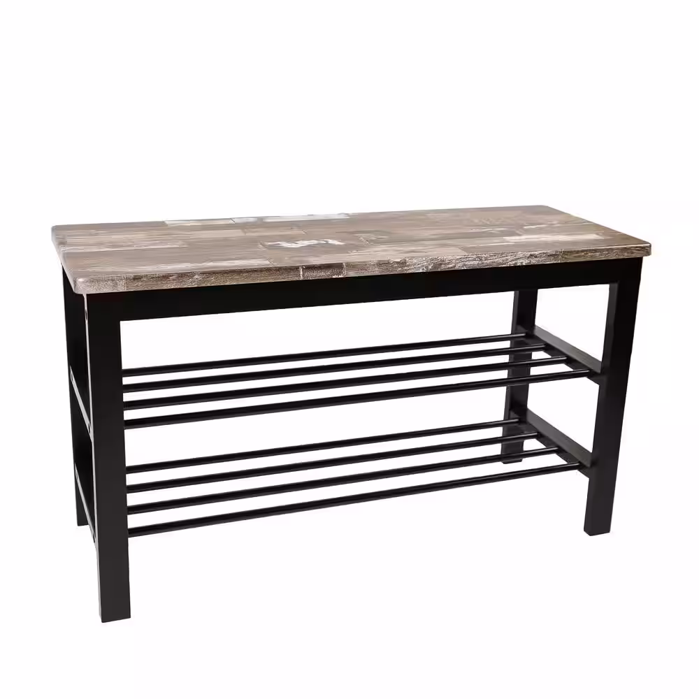 DANYA B Urban Escape 18.75 in. H x 31.5 in. W Brown and Black Iron Entryway Bench and Shoe Storage Bench Rack
