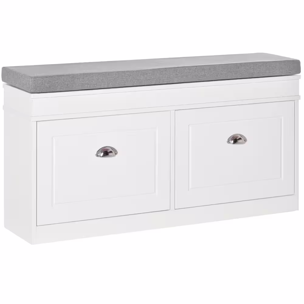 HOMCOM 23.75 in. H x 41 in. W 8-Pair White Wood Shoe Storage Bench with Cushion, 2-Drawers, Adjustable Shelf