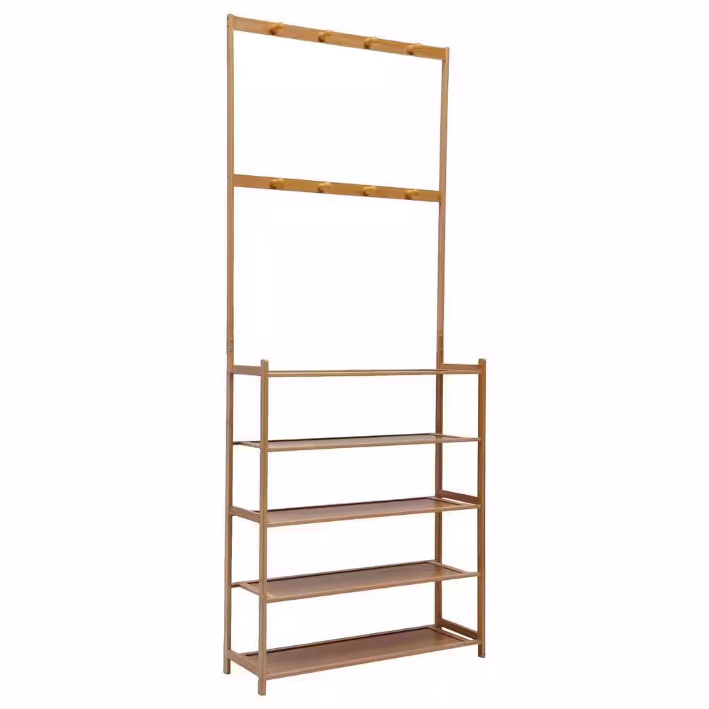 None 69.29 in. H 12-Pair Multifunctional Wood Shoe Rack with 10 Hooks