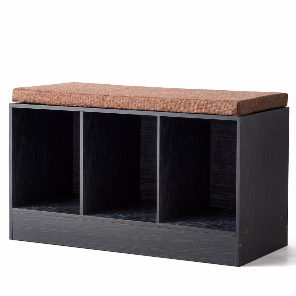 HONEY JOY 18.5 in. H 3-Pair Black Wood Shoe Rack with Removable Cushion