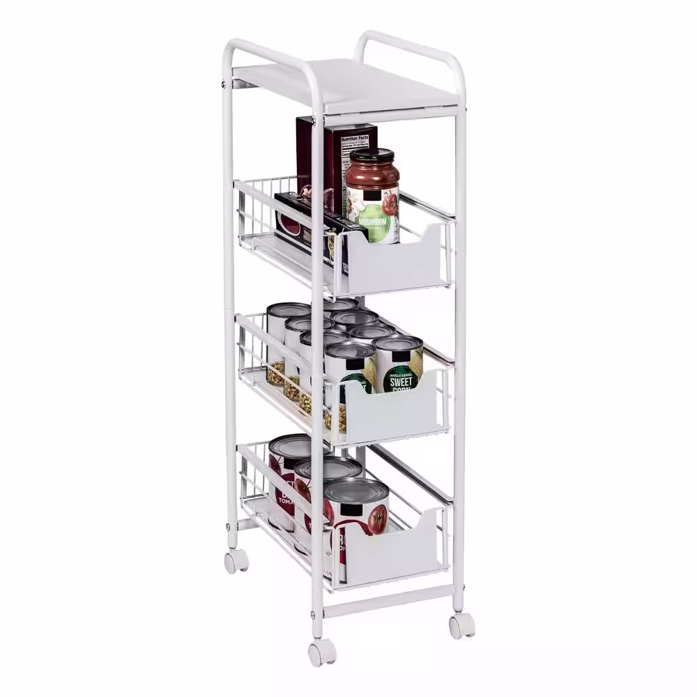 Honey-Can-Do 9.4 in. W x 33.1 in. H White Steel 3-Drawer Rolling Cart