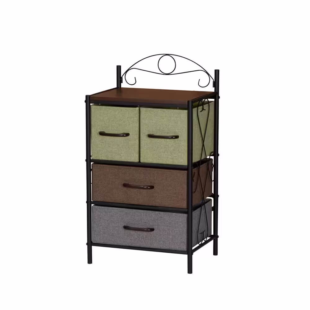 HOUSEHOLD ESSENTIALS 17.32 in. W x 31.7 in. H Walnut Pull-Out Fabric 4-Drawer Unit with Multicolored Drawers