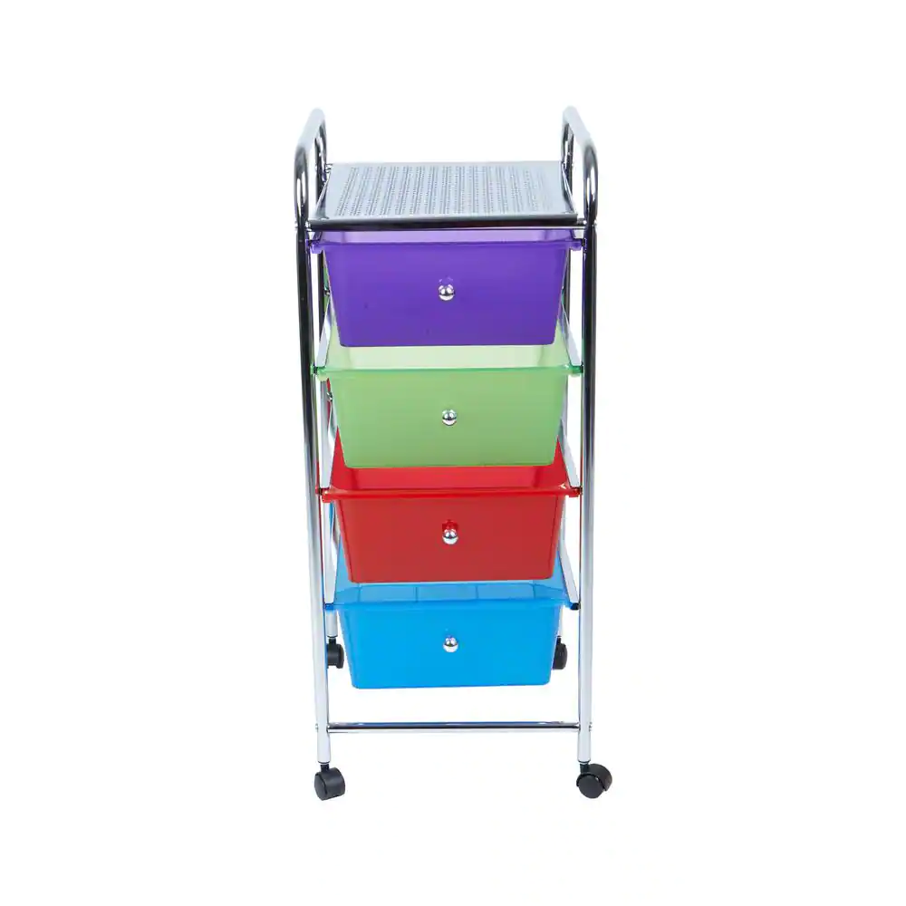 Mind Reader 30 in. x 14 in. x 12 in. 4-Tier Plastic Drawer Storage Trolley in Multi Color